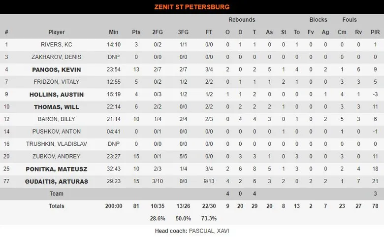 No es ninguna casualidad que Xavi Pascual sea un entrenador tan exitoso, ni que sea el encargado de liderar al equipo ‘underdog’ de la competición. Su obsesión por los detalles y su aplicación al estudio del juego explican en parte el presente de este Zenit, agigantado por unos resultados que no hacen más que reflejar un juego coral, divertido y tan maleable como el rival requiera. Tampoco es casualidad que Gudaitis eligiese el equipo Ruso para seguir creciendo, o que Pangos hiciera lo propio para volver a sentirse jugador. El coexistir de nombres cargados de talento -K.C. Rivers, Will Thomas, Austin Hollins, Mateusz Ponitka- podía ser una bomba de tiempo o el augurio de un equipo competitivo. Bajo la tutela de Pascual, el conjunto ruso encontró su razón de ser y sus mecanismos para, basándose en un Pangos revivido, empezar a sacar la cabeza entre los aspirantes de playoffs y, por qué no, Final Four. El entrenador catalán le otorgó al conjunto de San Petersburgo lo único que les faltaba: gen ganador. El resto de los ingredientes del cóctel ya estaban a su disposición.