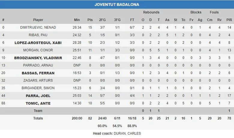 Si algo está consiguiendo Carles Durán este año es competir en encuentro en los que no se encuentra particularmente cómodo con la defensa de su equipo. A pesar de que sigue siendo este el baremo a utilizar para medir el rendimiento de su equipo, la identidad ofensiva desarrollada por el Joventut con la llegada de Bassas, la explosión de Xabi López Aróstegui, la sublevación de Neno Dimitrijevic y la categoría de Ante Tomic le permite plantarse de cara ante las mejores ofensivas de la categoría. Ya dejó atrás el equipo aquellas épocas de dependencia excesiva de la individualidad de Laprovittola o de Prepelic, ahora la responsabilidad ofensiva tiene más hombros sobre los que recaer, y por ende dispone de más recursos. Con la capacidad de los generadores del equipo, Joel Parra encontró su lugar como ‘jugador de espacios’, escabulléndose de su defensor para atacar los huecos generados por sus compañeros.