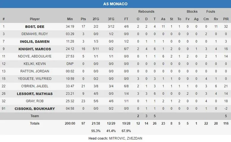 Toda la ofensiva que había sustentado al Joventut en la primera parte se desvaneció en la segunda. El ritmo impuesto por los jugadores del Mónaco obstaculizó las vías de creación y anuló a los generadores blanquinegros, que acabaron acusando las 16 pérdidas de balón por las 5 del Mónaco. En esa coyuntura emergieron Bost Dee y Rob Gray, dos jugadores decisivos para la anotación de su equipo. La ofensiva del equipo del principado se cimentó en el talento de sus hombres exteriores y la lucha de sus internos. El Joventut se vio sobreexpuesto debido a las -malas- basculaciones de sus jugadores en las segundas y terceras ayudas, lo que permitió al Mónaco explotar con éxito el rebote ofensivo. Con un acierto más alto de lo normal desde el triple y la zona rival invadida, el equipo de Mitrovic tuvo el control absoluto del partido durante toda la segunda mitad. Solo Neno Dimitrijevic intentó tirar del carro para la Penya, aunque se halló huérfano ante superioridad rival y su equipo acabó regalando también el ‘average’.