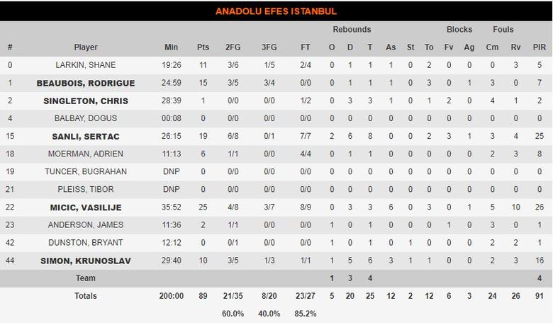 Ya llevamos toda la crónica hablando de como Vasilije Micic dominó desde el principio y casi no queda mucho más que añadir. Sus números, que no son nada fríos, dicen mucho pero no muestran por completo como el juego fue absolutamente suyo durante los tres primeros cuartos. Antes de empezar el último cuarto y con el partido en teoría ya decidido sumaba 23 puntos, 3 rebotes, 6 asistencias y 26 de valoración, habiendo descansado solo 6 segundos. Pero es que todo el buen juego de Anadolu salía de sus manos mientras desquiciaba a la defensa de CSKA, que ya había cometido 6 faltas sobre él y dos de ellas fueron antideportivas, mostrando la frustración que da no poder parar a un genio como el serbio.