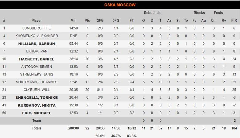 CSKA MOSCOW 92-76 FENERBAHCE BEKO ISTANBUL