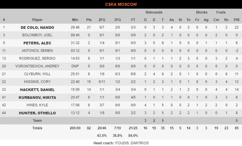 35 rebotes de CSKA por 24 del Real Madrid. La intensidad y lucha bajo los tableros fue determinante para las segundas oportunidades. CSKA ganó la batalla física, y recogió 16 rebotes ofensivos, casi tantos como defensivos (19), más del doble que un Real Madrid que únicamente atrapó 6 en ataque.