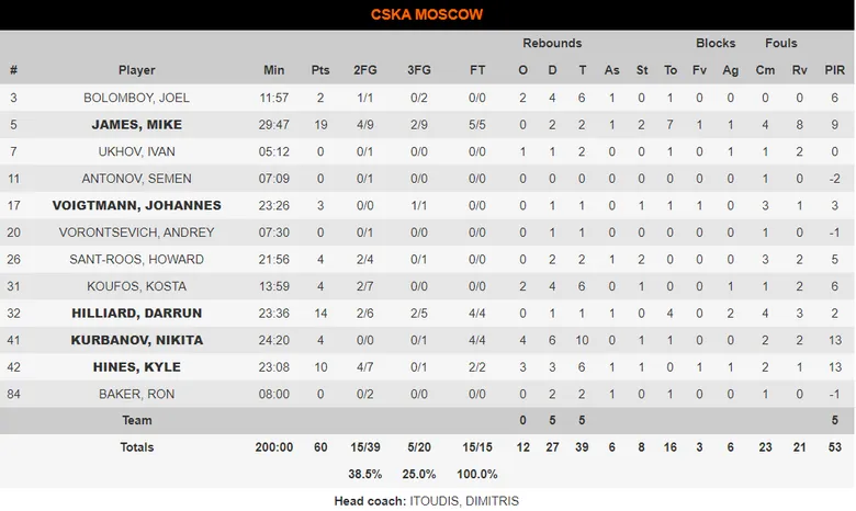 El CSKA de Moscú puso fin a la racha de 13 victorias consecutivas del Real Madrid en Euroliga al vencer al equipo blanco por un discreto 60-55. La maldición de los madrileños en la pista rusa se amplía a más de 11 años sin conocer la victoria, demostrando, una vez más, lo complicado que es conquistar Moscú. Tras un comienzo positivo de los de Laso en el que llegaron a gozar de una ventaja de 11 puntos, su homólogo en el otro banquillo, Itoudis, decidió apostar por un juego más físico que condensó a Thompkins, Campazzo y compañía en ataque.