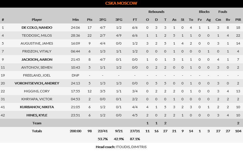 Pero esto no fue suficiente para parar al killer Teodosic, que con dos tiros libres y un triplazo, sumado a una canasta de De Colo tras pérdida baskonista, dejaba el marcador en 93-90. Y, aunque Baskonia tuvo una opción más, Shengelia falló su tiro bajo la canasta con un poco de mala suerte. El juego de los tiros libres hizo que CSKA confirmara su victoria por 98-90 y colocara el 1-0 en la serie.