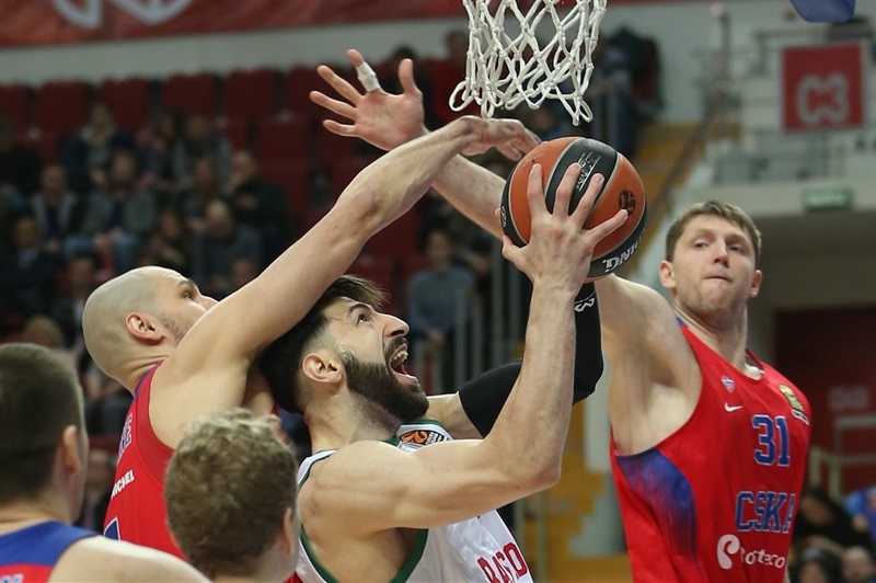 Con todo esto y unos Voigtmann y Shengelia que mejoraban considerablemente el control del rebote defensivo, Baskonia era capaz de culminar la remontada colocando un 33-35 en el luminoso, gracias a un triple de Beaubois (máximo anotador al descanso con 11 puntos). Desde aquí, se dio un intercambio de golpes, donde CSKA fue capaz, gracias a los triples de Teodosic, de irse con un 44-40 al descanso.