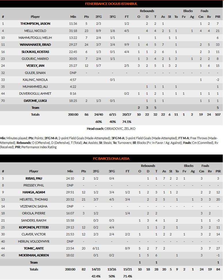Cuando el partido parecía encarrilado para Fenerbahce aparecieron Tomic y Heurtel para liderar la remontada del FC Barcelona. Obradovic tuvo que rehacer su quinteto después de confiar en jugadores menos habituales en este último periodo. Volvían Sloukas y Vesely para volver a renta de +10, pero un entonado Heurtel acercaba al FC Barcelona hasta el 82-79 a falta de menos de dos minutos. En el tramo final, Wanamaker acababa por decantar el triunfo de un Barcelona que peleó hasta el final.