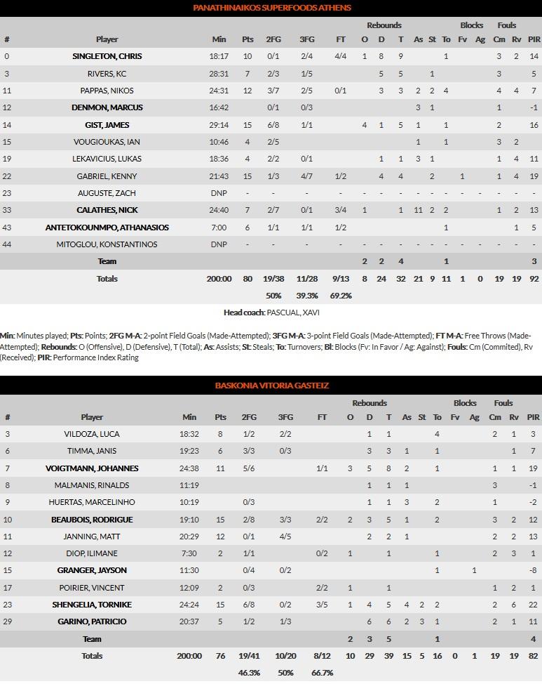 El conjunto vitoriano no pudo mantener el buen nivel del arranque de partido y se vio superado en la segunda mitad por un Panathinaikos que impuso su juego interior para revertir el partido y sellar un triunfo que les consolida en la cuarta plaza.