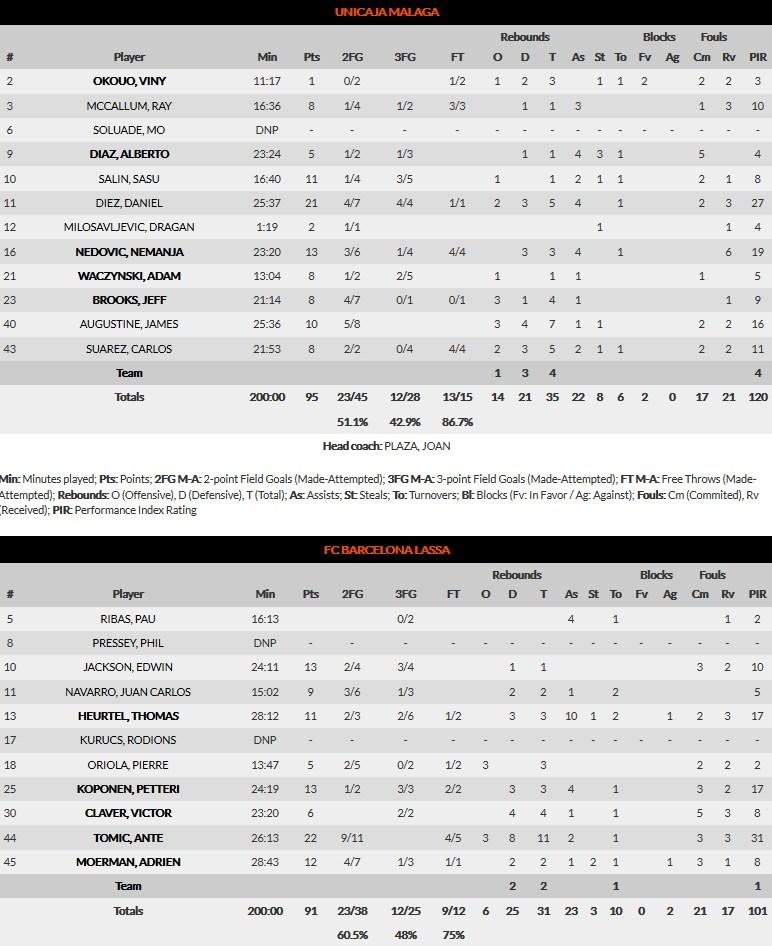 El Barcelona, sin brillantez por momentos, conseguía pelear el partido. Un parcial 5-16 dejaba el partido en 89-87 para encarar el minuto final. En ese momento clave Unicaja estuvo solvente y eficaz para cerrar el partido.