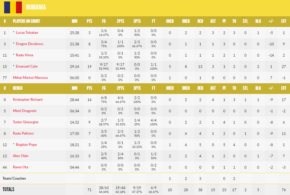 Rumanía salió dispuesta a remontar el encuentro en el último cuarto, rompiendo la barrera psicológica de los diez puntos durante el primer minuto de juego. Conocedores de ellos, los españoles dieron un paso adelante para mantener viva su ventaja y llevarse el encuentro. San Miguel anotó un tres más uno con el que volver a poner una diferencia de dos dígitos, la cual se mantuvo hasta el ecuador del cuarto. El partido entraba en una fase de inestabilidad en la que ninguno de los dos equipos consiguió tomar el control. Pese a las imprecisiones de España en ataque, su defensa permitió que los rumanos no fueran capaces de aprovechar el mal momento anotador de sus rivales. A falta de dos minutos, Dani Díez lograba su cuarto triple con el que sentenciaba el encuentro en un partido excelente para él, anotando 21 puntos con un 80% en tiros de campo. Así, el resultado al final del partido fue de 71-84.