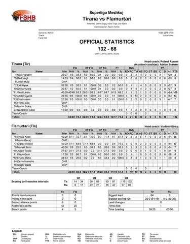 El SK Tirana ocupa la tercera posición de la Superliga de Albania, que cuenta únicamente con seis equipos. El quinto y penúltimo es, precisamente, el Flamurtari, rival de esta jornada del Tirana y que ha sufrido la exhibición de Lasku. Cerrando estas líneas, el boxscore del encuentro, para aquellos incrédulos.