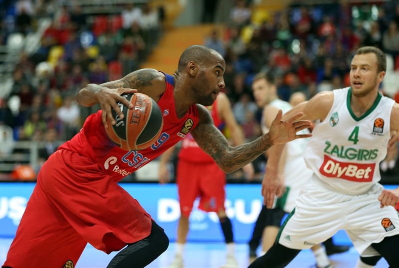 El CSKA de Moscú consigue mantener su primera posición al obtener una trabajada victoria contra el s iempre correoso Zalgiris. Aquejado por l a baja de De Colo, que estará aproximadamente un mes de baja por la lesión que sufrió el pasado miércoles en el muslo izquierdo, el vigente campeón de la Euroliga estuvo por debajo en el marcador los 32 primeros minutos del partido, en parte por culpa de un enorme Jankunas (30p, 8r, 37 val) y la buena labor de los bases visitantes. Tuvieron que salir al rescate dos invitados inesperados como Aaron Jackson , autor de 11 puntos en el último cuarto, y J eff Ayre s, autor de 7 y 6 rebotes, para dar la octava a un CSKA que con tra equipos más fuertes va a tener mucho más complicado consumar remontadas como la de ayer. En el plano estadístico, MVP del partido para Jeff Ayres , autor de 12 puntos, 7 rebotes y 26 de valoración (en 12 minutos!), bien secundado por los 25 puntos de Teodosic, y estéril partidazo del veterano Jankunas por parte lituana.