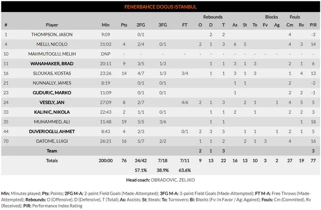 Pocos triples se han tirado en el partido, y menos se han intentado. Sorprendente. Con unas defensas muy cerradas, el tiro lejano no ha sido una opción. Y esto ha condicionado los ataques. El Zalgiris no ha anotado su primera canasta de 3 puntos hasta el último cuarto, para solo 2 canastas de 3 al término del choque (las 2 en el tercer cuarto) después de 10 lanzamientos. El Fenerbahçe tampoco se ha prodigado demasiado más allá del arco con 7 triples anotados de 18 intentos.