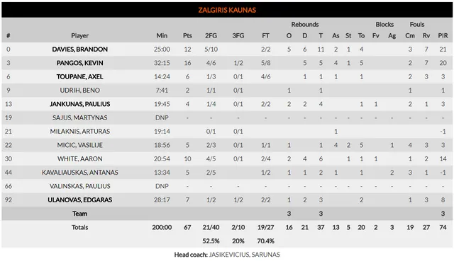 Pequeño, pero matón. El base americano ha tenido una temporada complicada, con una lesión que le impidió empezar a tiempo. Pero todos sabían de su peligro. Podía estar mal, entrar en la pista y dinamitarlo todo. Y así ha sido. En el primer cuarto ya ha mostrado su capacidad para darle un empujón al partido y en la recta final ha decidido que el sufrimiento debía acabar. 8 puntos consecutivos para alejar al Zalgiris de cualquier razonamiento de final. Finalizó con 19 puntos (8/11 en TC) en poco menos de 12 minutos sobre la pista.