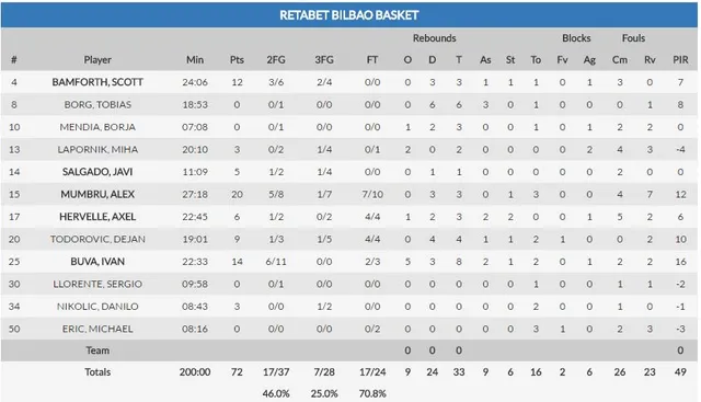 4. LAS PÉRDIDAS DE BALÓN. Carles Duran tiene apuntado en rojo en su línea de trabajo este apartado estadístico. Y pese al trabajo que, seguro, se ha realizado esta semana el problema sigue siendo palpable. Ante los rusos sufrían 16 pérdidas de balón, que permitían a los de Dusko Ivanovic anotar muchos puntos tras pérdida bilbaína. Una remora demasiado grande ante un equipo de la categoría de los moscovitas. Cabe añadir, que mediado el tercer periodo, y tras una disputa entre Eric y Sokolov el trío arbitral ha decidido descalificar a ambos y echarlos del partido.