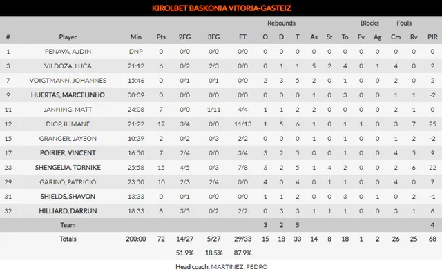 3. Defensa. En el terreno defensivo, los de Pedro Martínez hicieron realmente un gran trabajo que al final no tuvo el desenlace esperado. No solo el rebote da buena constancia de ello, sino también los pocos puntos fáciles que tuvo Fenerbahce, que al final tuvo que tirar en muchas ocasiones de calidad individual de los suyos. Al final el tener más recursos ofensivos por parte de los turcos acabó inclinando la balanza ante un Baskonia en el que quedaron muchos jugadores por aparecer.
