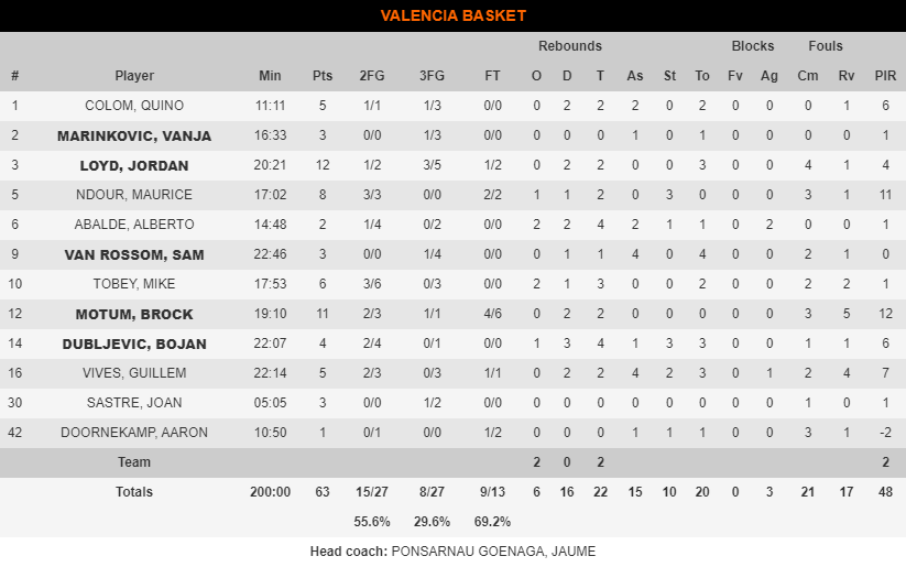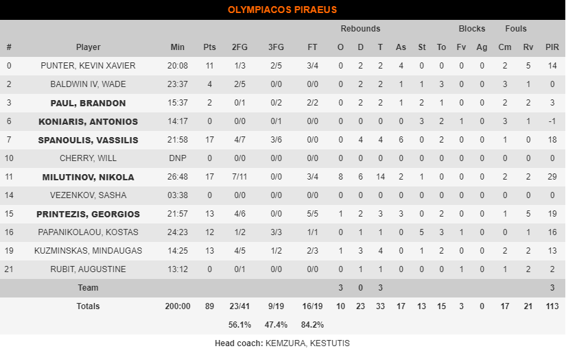 1-Débil defensa. Este fue el grave problema que tuvo Valencia Basket hoy en el Pireo. Desde el minuto uno, Olympiacos se encontró muy cómodo en la pista, sin sentir la presión de los taronja, que en ningún momento fueron capaces de parar a Spanouilis y compañía. El rebote fue ganado claramente por los locales, que disfrutaron de muchas segundas oportunidades. El conjunto valenciano, además, permitió 31 puntos en el primer cuarto y 23 en el segundo, con lo que en la segunda parte, el partido ya era insalvable. Los principales jugadores de Olympiacos tuvieron muy buenos números: Spanouilis y Milutinov fueron los máximos anotadores con 17 puntos, siguiendo Printezis y Kuzminskas con 13 cada uno.