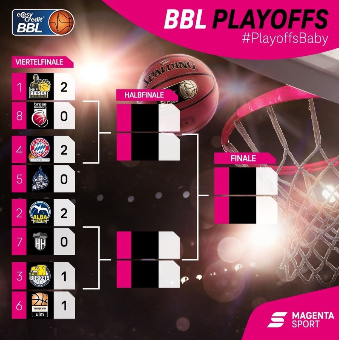 Como bien nos comentaba Miguel Zapata, segundo entrenador de Hamburg Towers, tras conseguir vencer en la misma semana al Bayern Múnich y a ALBA Berlín (equipo al que habían derrotado dos veces esta temporada): “No es lo mismo jugar contra ALBA Y Bayern en temporada regular que en playoffs“. Y qué razón tenía. Su equipo, con un valiente planteamiento tratando de jugar a ALBA de tú a tú, sufrió la mutación postemporada de los de Berlín, que se adjudicaron los dos primeros partidos en casa. Lo mismo hicieron tanto el líder de la temporada regular Ludwigsburg frente a Bamberg (que sin embargo promete guerra en su cancha), como el Bayern Múnich –que parece haber dejado atrás el revés sufrido frente a Milano-, ante Merlins Crailsheim, equipo revelación del año. Más igualada se presenta la serie Oldenburg-Ulm, que marcha 1-1 hasta el momento.