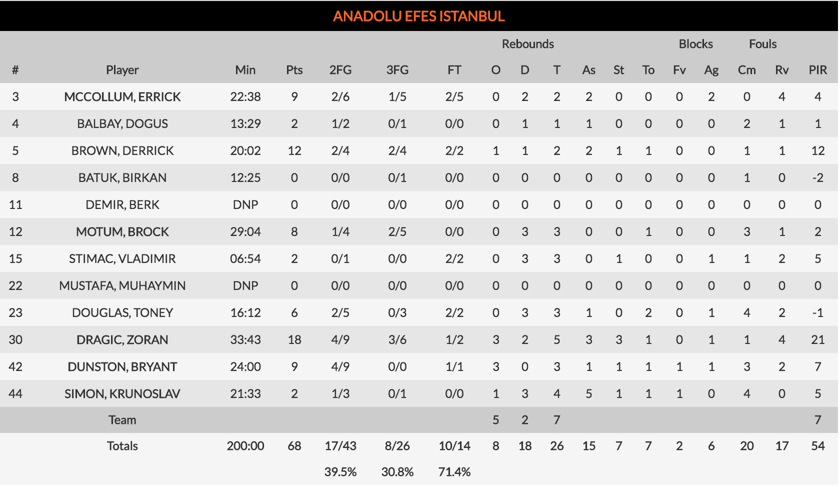 Ni rastro del Efes. El partido pudo romperse mucho antes. A pesar de que los turcos estuvieron vivos hasta mediados del tercer periodo, nunca dieron la impresión de tener opciones de ir a por el partido. Ni siquiera lo intentaron cuando se vieron con un -12 a falta de 10 minutos. Individualidades de McCollum, arreones de Zoran Dragic y poco más. La diferencia en valoración lo dice todo: 116 a 54.