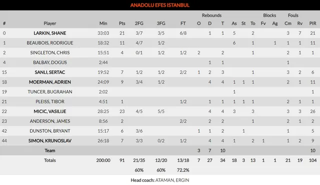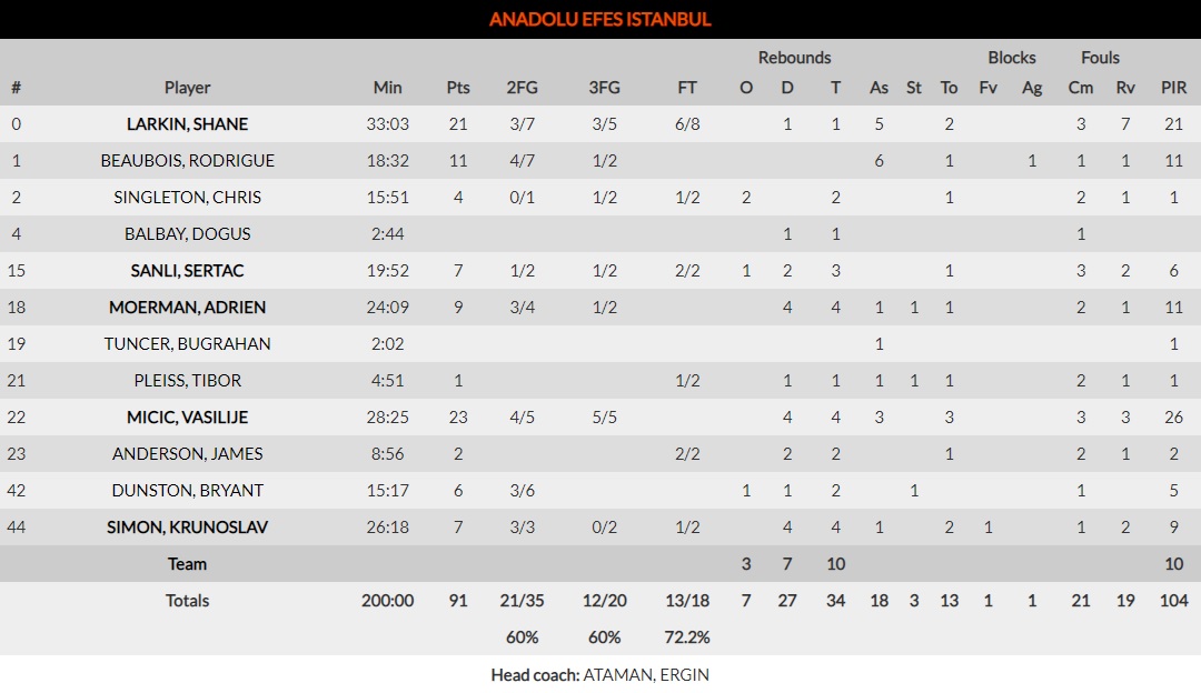 Durante gran parte del partido se ve a un Real Madrid sin orgullo, sin un ápice de intensidad por defender su escudo y la imagen ofrecida. Pese a que su rival haya dominado el partido de principio a fin, cuando levantaron el pie del acelerador, el conjunto blanco no puso ninguna intención de apretar en defensa y dar la cara pese a que el final vaya a ser similar. Las sensaciones serían distintas para continuar la serie en Madrid. Sin embargo, los de Pablo Laso pierden ambos partidos en Turquía por más de veinte puntos y dos caras en cuanto a la imagen ofrecida en pista.