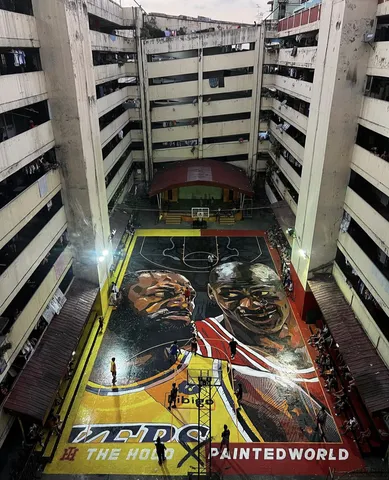 Hace unos días, Maya Carandang, artista de Painted World Manila, llevó a cabo una de las grandes creaciones de arte, pintando en Punta, Santa Ana (Manila) a LeBron James y Michael Jordan, haciendo una pregunta de quien se considera mejor de todos los tiempos. James sale con el uniforme de Lakers y Jordan con el rojo de Bulls. James visitó Manila en 2015 para guiar a los finalistas de “Rise”, buscando jóvenes talentos filipinos. En aquel momento, ya se pintó una primera cancha en honor al jugador de Akron.