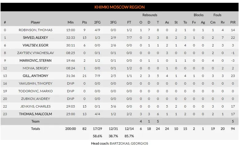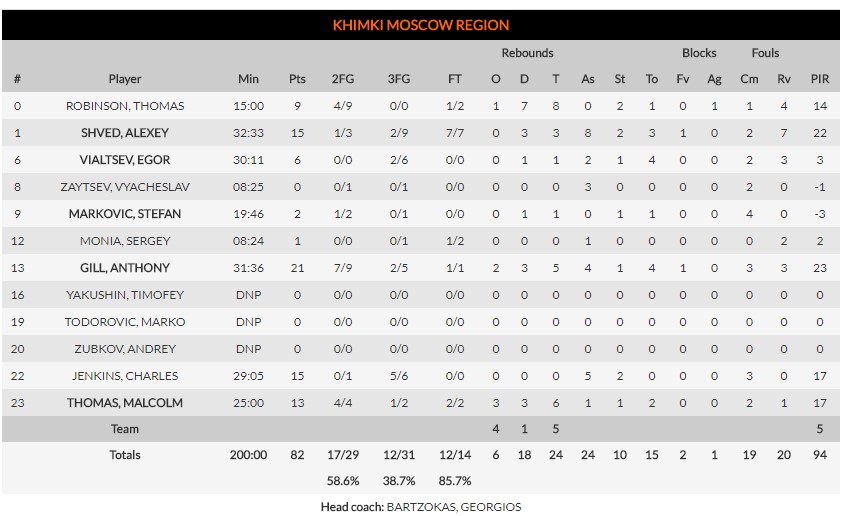 Despertaba finalmente Khimki con un parcial de 0-13 con el que evitar tempranas deshonras y humillantes marcadores, con cuatro triples de Jenkins, mientras se esperaba por la gran estrella rusa. Rompía por fin el hueco en el acta Heurtel para hacer su tercer triple sin fallo y Anthony Gill hacía la media parte perfecta para 15 puntos sin yerros y dejar la pausa larga en 54-45, esperando a que comparecieran las defensas al partido.