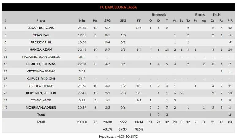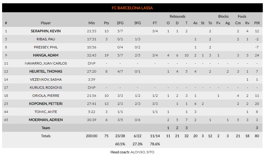 No tenía piedad Jasikevicius de su antiguo equipo y mandaba castigar una y otra vez el 2×2 con el par de Seraphin, para contrarrestar orgullos y verticalidad blaugranas, que no daban, en cambio, para reducir ventajas. De fuera a dentro o por la línea de fondo White hacía mates por doquier, toda una señal de la debilidad local sobre el 3,05.