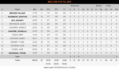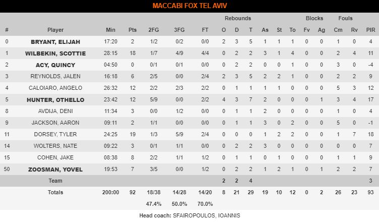 El conjunto israelí está cuadrando una gran temporada, y su actuación en el encuentro de hoy es una prueba más de ello. En parte es por la labor de Sfairopoulos, pero también por los jugadores que tiene. Más allá de Wilbekin, destacaron jugadores del calibre de Caloiario, Cohen e incluso Zoosman. Este ámplio abanico de alternativas fue lo que permitió a Maccabi competir de tú a tú durante todo el encuentro.