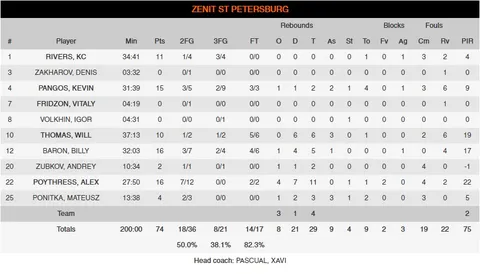 Las palabras de Xavi Pascual dejaban claras las intenciones del equipo ruso, seguir metidos en el partido hasta los minutos finales para tener opciones de ganarlo. De ello se encargaron los inspirados Billy Baron y Kevin Pangos, que encontraban la canasta con gran facilidad a través de bloqueos directos y dobles bloqueos servidos por sus compañeros, y sobretodo por Alex Poythress, que completó un gran partido.