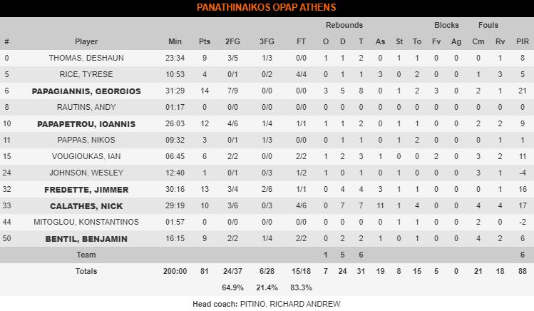 En los locales, Calathes comandó una unidad que estuvo muy bien escoltada por Papapetrou, Papagiannis y Fredette. El base griego, alma y motor del equipo, no claudicó en su esfuerzo por tumbar a los blaugranas, dejando varios pases marca de la casa. Los demás pecaron de irregulares, y no lograron el objetivo.