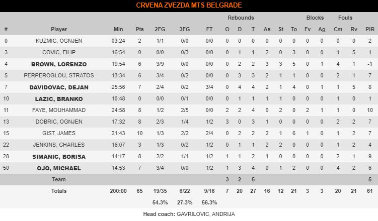 Estrella Roja siempre fue un equipo intenso, lo tienen en la sangre. Solo con ver a las gradas les bastaba a los jugadores para encontrar la motivación necesaria. Con buenos minutos de Michael Ojo, los serbios lograron mandar en el marcador los primeros minutos. También encontraba motivación en la grada Brandon Davies, que luchaba todas las pelotas. Digno a su estilo, tuvo que ser sustituído por un golpe recibido en el ojo durante una lucha por un balón. (12-8 min. 6)