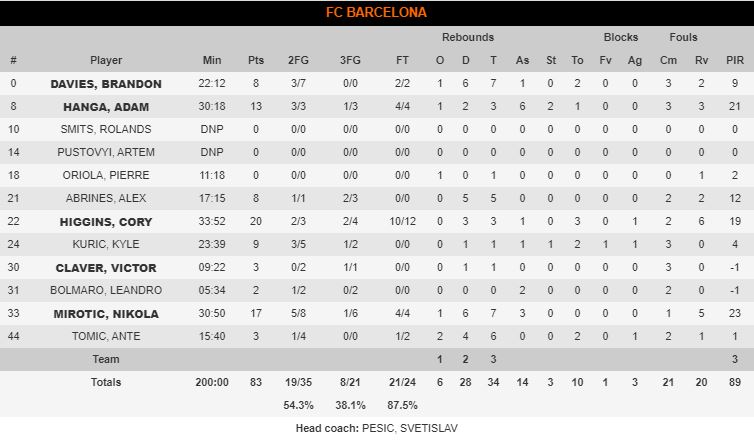 A pesar de que los culés conseguían anotar por talento, su ataque no lograba la lucidez necesaria para tumbar al rival ni tampoco esa defensa que tan buenos resultados le dio a Pesic (52-54 min.16).