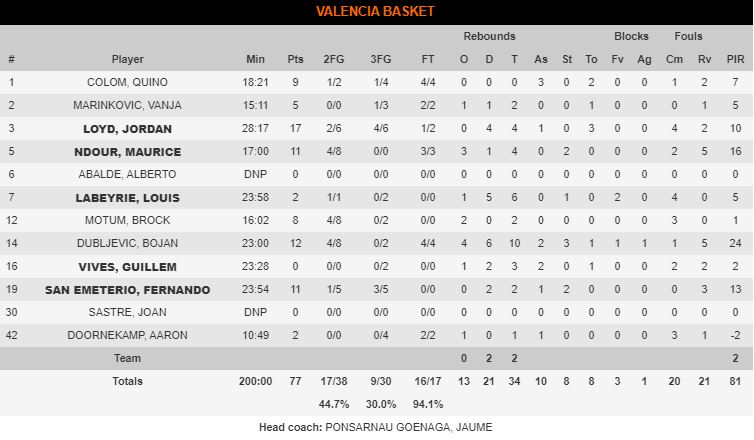 A pesar de que el Valencia tiene grandes jugadores, hoy demostró durante algunos tramos del encuentro que aún le queda mucho para parecerse a un gran equipo. Lloyd demostró tener una facilidad increíble para anotar, pero no así para ser parte de un conjunto. Ni Colom ni Vives lograron cohesionar a un equipo que no acaba de cuadrar las piezas y que sigue sin lograr ganar en Euroliga.
