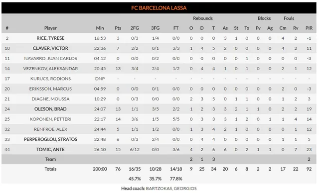 Los visitantes reaccionarían con presteza y una gran racha de la mano de Simpson y Alexander les ponía tres puntos abajo (69-66). Con poco menos de dos minutos por jugarse Alexander conseguía un triple que apretaba aún más el electrónico (71-69). El minuto siguiente sería un cúmulo de fallos y a falta de 24 segundos tan solo Vezenkov había conseguido sumar algo, mediante un tiro libre (72-69). Lo que quedaba de encuentro fue un trámite. Con Oleson y Koponen sumando sus respectivos tiros libres el resultado final sería de 76-71. Así, el Barça conseguiría llevarse la victoria en su último encuentro en Euroliga en el Palau Blagrana.