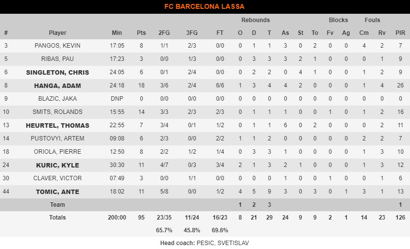 Adam Hanga, clave en la victoria azulgrana. El húngaro aportó 18 puntos, además de 4 rebotes y asistencias en 24 minutos, para irse a los 26 de valoración. Lideró el ataque de los suyos cuando el partido se aceleró, y mostró su mejor versión en defensa, contagiando al colectivo. Partido muy valioso para él, teniendo la moral por las nubes.