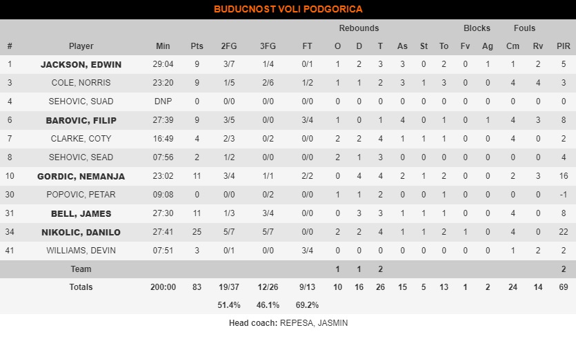 Danilo Nikolic, mejor imagen de Buducnost. Los montenegrinos mostraron una buena imagen, estando a la altura en los primeros 20 minutos, donde se fueron por delante en el marcador. Hasta el último cuarto no dieron su brazo a torcer, y gran parte de culpa la tiene el interior Danilo Nikolic. Con 25 puntos (5/7 T3) firmó uno de los mejores partidos de su temporada.