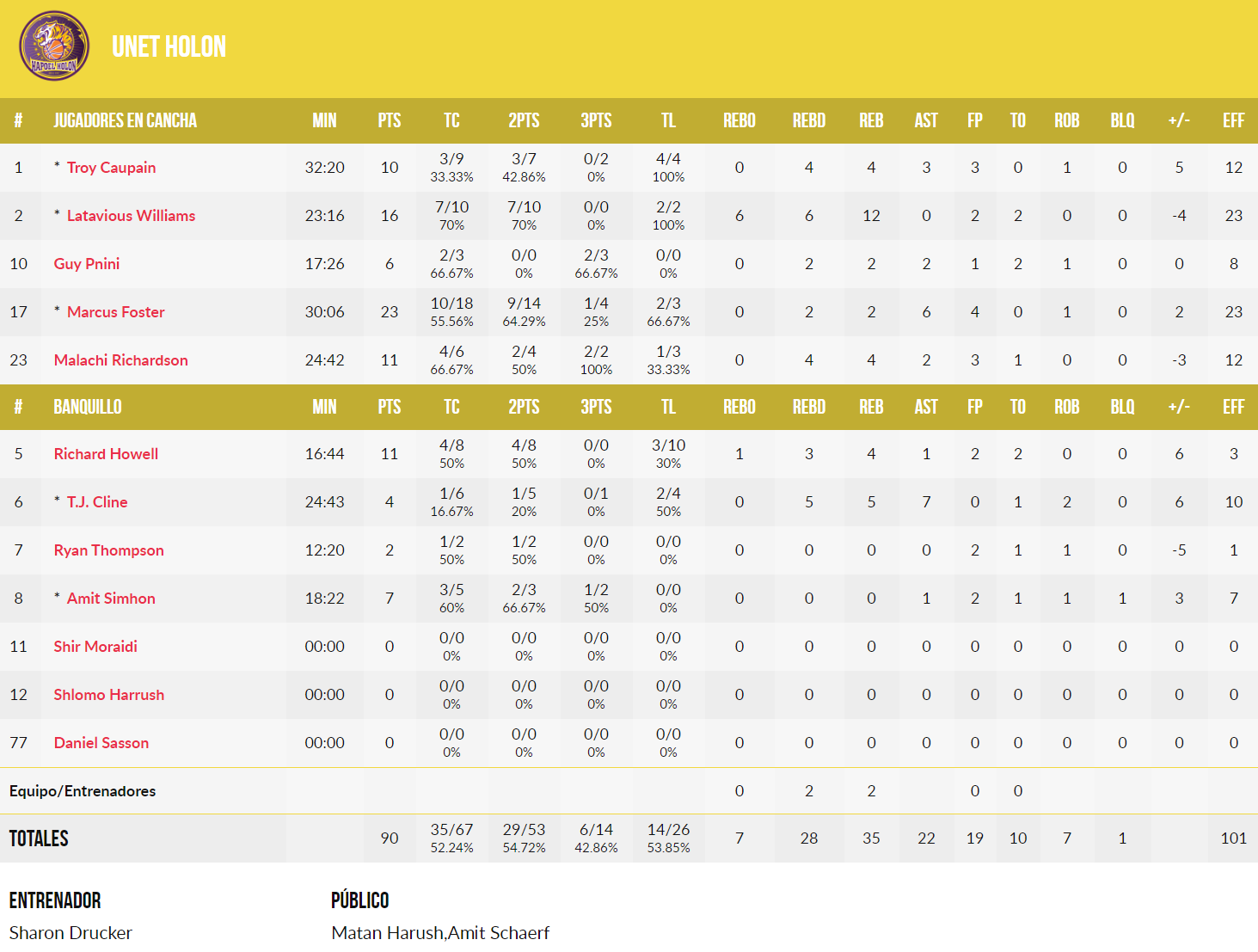 - Marcus Foster, metepuntos de profresión: a pesar de que no apareció en el último cuarto, fue el jugador clave en la remontada y mantuvo al Holon en el partido en todo momento. 23 puntos y 6 asistencias fueron el bagaje del jugador estadounidense.