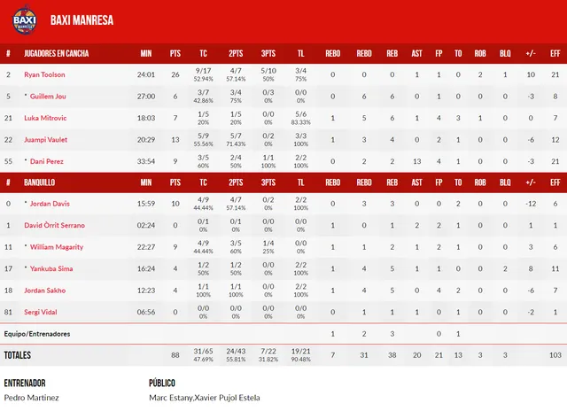 - El dominio de la pintura, factor clave: de todos los puntos que se anotaron en el partido, 98 fueron en la zona. Ahí emerge la figura de Latavious Williams, que con 12 rebotes (6 en ataque) dominó los aros y aportó 16 puntos.