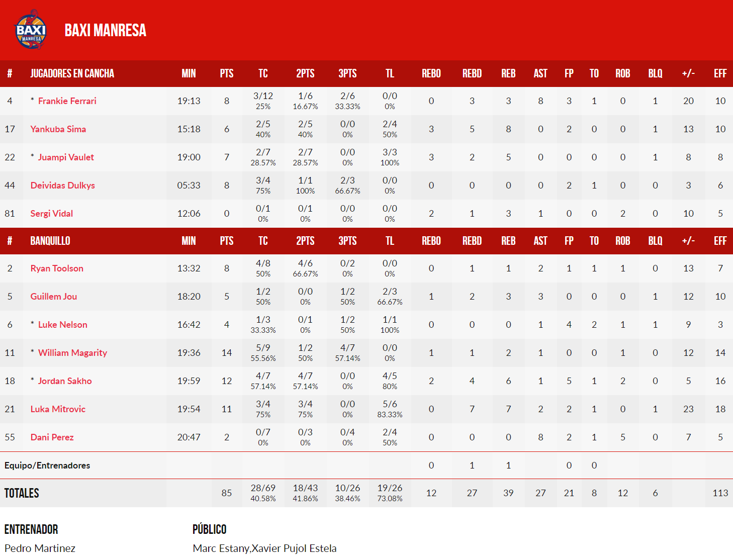 - Plantilla escasa de jugadores de Oostende: los visitantes acudieron a esta cita europea con solo 9 jugadores. Una escasa rotación que se visualizó en los puntos de banquillo: 40 de Manresa por 15 de Oostende