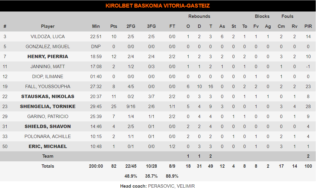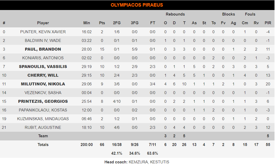 Siete puntos consecutivos concluidos con un triple de Vildoza ponía tierra de por medio y sentenciaba a Olympiacos a intentar forzar una remontada casi imposible. Estuvo cerca, más por ganas que por juego, pero tan solo Milutinov y Brandon Paul aportaban algo a la anotación de los griegos llegando a estar a ocho puntos de diferencia de nuevo. Finalmente, unas nuevas canastas de Shengelia, siempre constante y bien secundado ahora por Pierria Henry, definían la victoria por 82-66 que deja a los locales con 2 victorias y 2 derrotas.