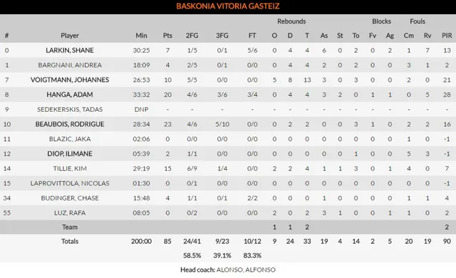El último período no merece ser muy mentado. La dinámica adquirida hasta el momento dejaba a los de «Peras» muy por encima de una plantilla vasca completamente desubicada: falta de intensidad defensiva, errores tácticos significativos, poca circulación, ninguna agresividad y mal control del rebote defensivo. Todo lo contrario que el rival, el cual daba sensación de hacer todo bien, sobre todo en ataque. Thomas Heurtel, el mejor exterior de su equipo, se fue hasta los 21 puntos y 11 asistencias. Por su parte, Dunston realizó un partidazo, con buenos porcentajes y 5 tapones: 15 puntos y 6 rebotes, para 29 de valoración.