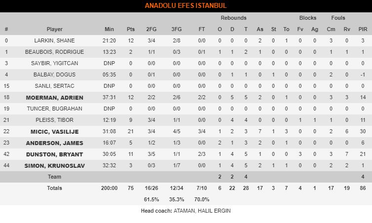 Triples: a pesar de acabar con un 12/34, los turcos tuvieron dos rachas donde estuvieron muy acertados, el primer cuarto y el principio del último. En estos dos tramos lograron generar brechas que le permitieron disfrutar de una ventaja que luego supieron mantener. Micic, una vez más, fue el más destacado desde la larga distancia con un 4/5.