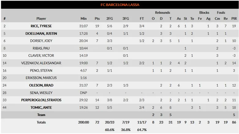 El FCB Barcelona se enfrentaba al Fenerbahçe en un encuentro que se presumía igualado, y así lo ha sido hasta el final. Los de Bartzokas han afrontado el partido con un seguido de bajas sensibles para la rotación: Koponen, Lawal y Navarro.