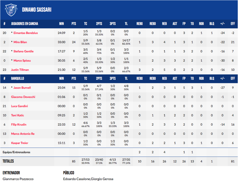 Fiesta de puntos en Tenerife en equipo. En Y los italianos bajaron las brazos viendo la que estaba cayendo. Si no era Shermadini, 19 puntos, era Salin, 14 o Huertas, 15. Y eso contando los puntos del banquillo. A los que habría que sumar Cavanaugh, 16 puntos, Fitipaldo, 16 o Fran Guerra otros 16 puntos. Una victoria coral y un dominio absoluto de los de Vidorreta que se fueron hasta más de la centena de puntos.