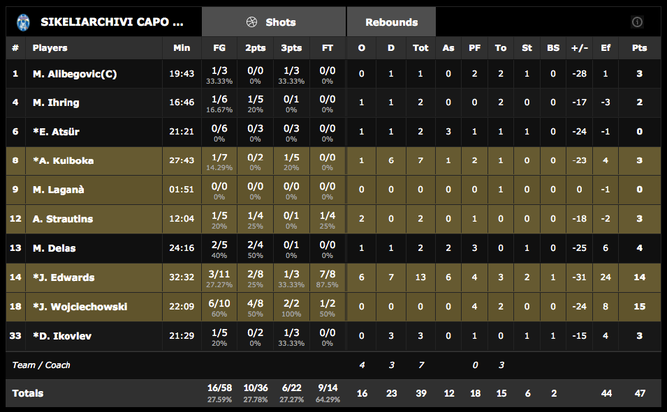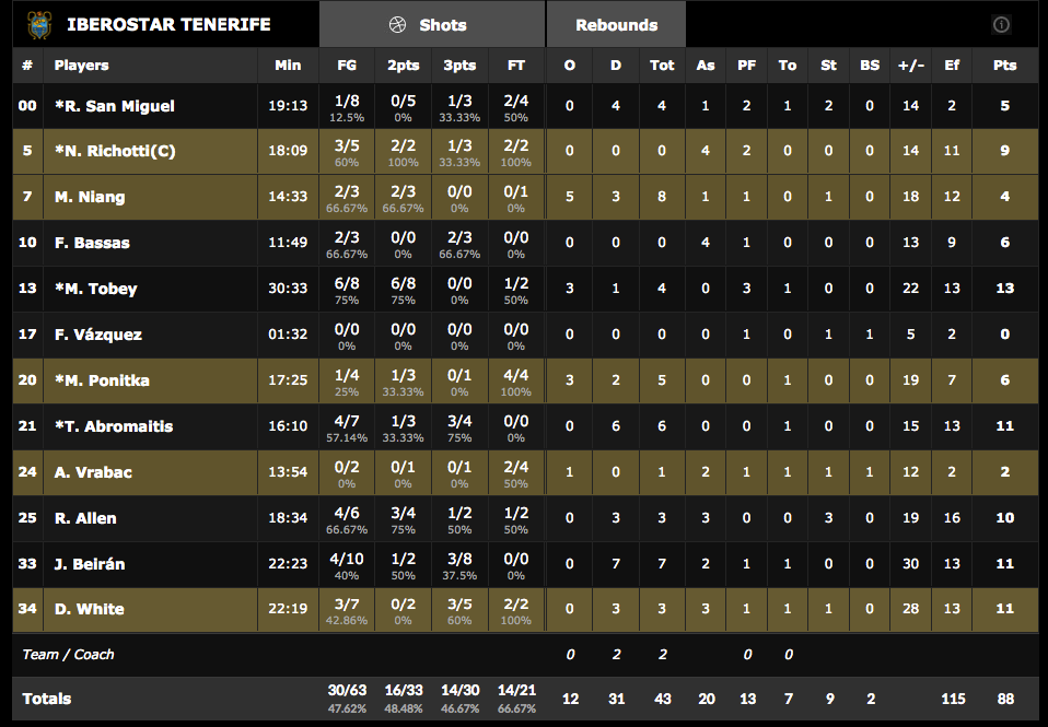 - El ritmo de competición europea. Algo que no se suele tener muy en cuenta a la hora de analizar el rendimiento de un equipo en este tipo de competiciones son los desplazamientos y las horas de vuelo o carretera a la que los jugadores son sometidos. Esto es un plus para el equipo local pero suele ser un hándicap negativo para los visitantes, puesto que en este caso, los italianos llegaron el Martes por la noche a la isla, casi con menos de 24h de diferencia para jugar. Es un factor bastante interesante y que siempre tiene alguna influencia en el juego.