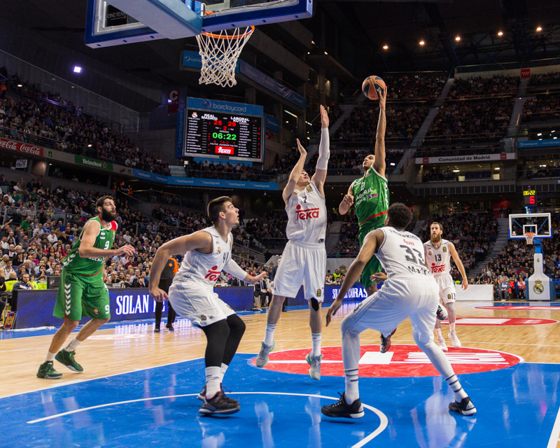 Davis Bertans, con dos triples, inauguró el segundo cuarto para el Laboral Kutxa. El conjunto dirigido por Velimir Perasovic aprovechó los errores defensivos del Real Madrid para marcharse al descanso con 4 puntos de ventaja (37-41), y no fueron más porque Felipe Reyes anotó un triple sobre la bocina.
