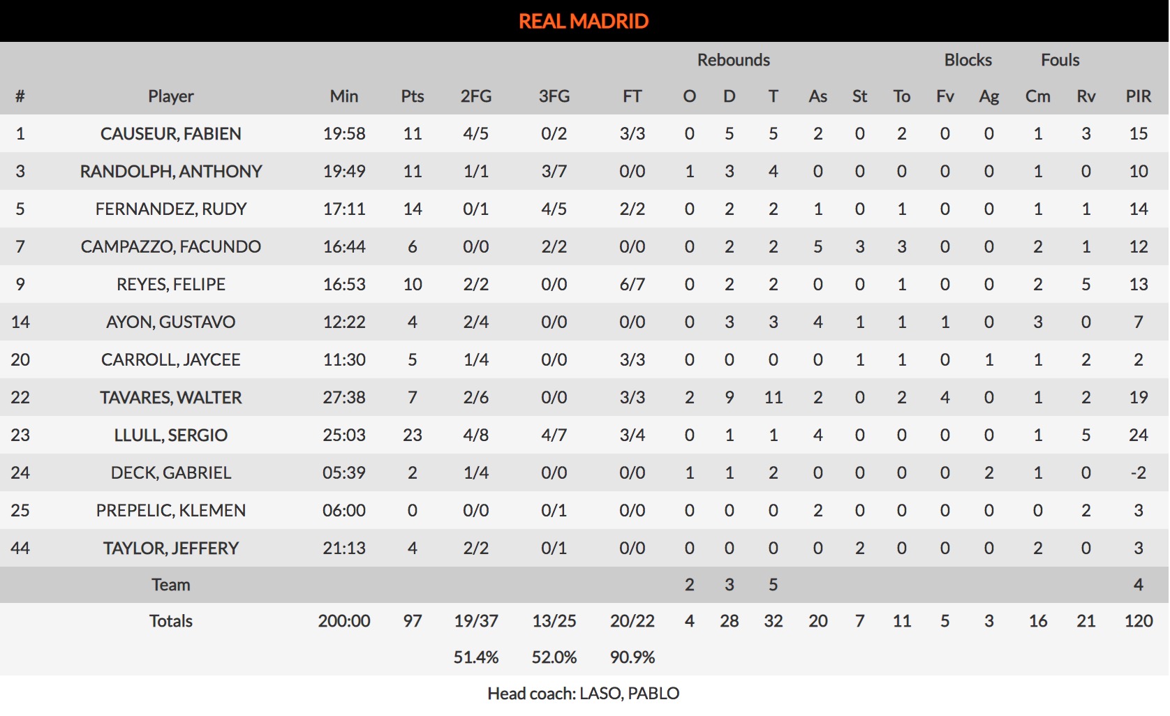 Pero, como comentábamos, el Madrid tenía vía libre al aro. La permisividad de Baskonia a los francotiradores blancos (8/14 en triples) y el carrusel de tiros libres (12/14 para RM; 8/9 para BASK) hacían que fuera imposible la remontada a pesar de los intentos de Marcelinho Huertas, también en la decena. Un partido más, el Real Madrid estaba en estela de los 100 puntos (52-44 al descanso). Y a eso, no hay equipo en Europa que pueda jugarle.