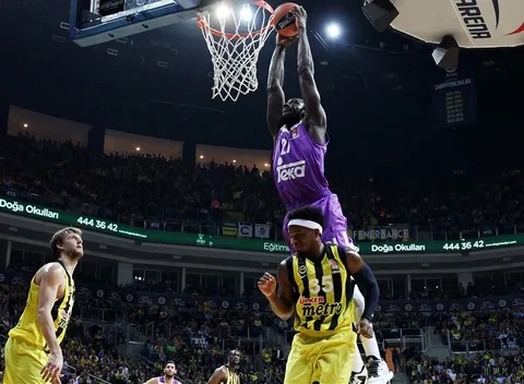 El infierno turco se ponía su cara más terrorífica para acoger un partido lleno de recuerdos por parte de los dos equipos. La eliminación del año pasado en los cuartos de la Euroliga, donde Fenerbahçe jugó como nunca y eliminó con todo merecimiento al Real Madrid, todavía sigue fresco en los dos equipos. Con todo ello, comenzaba el partido con los locales aupándose con su público y un Nunnally espectacular en el primer cuarto, que ponía el 7-4 en los primeros tres minutos de encuentro. Al Madrid le costó entrar en el partido, pero la entrada de Carroll por Doncic dio un plus al Madrid en ataque, que conseguía aguantar el empuje turco gracias a los 4 rebotes ofensivos que capturó en los primeros compases (12-11). El duelo se estaba viviendo en la pintura, con Ayón y Reyes sosteniendo a los blancos (hoy, de morado) y la pareja Vesely-Udoh (especialmente este último), haciendo daño en cada ataque. El primer triple del Real Madrid llegaría de la mano de Maciulis, pero Sloukas entraba en el encuentro para dar una marcha más (si cabía), y endosar un parcial de 7-0 culminado por una asistencia para el alley-oop de Nunnally, que anotaba su noveno punto del encuentro. En el último ataque del partido, Sergio Llull tiraba de cabeza para desbordar a la defensa y encontrar a Rudy Fernández que, tras finta, se levantaba y anotaba un triple que sabía a gloria (23-19).