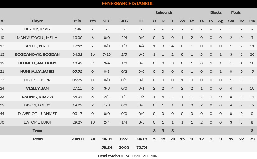 Fenerbahçe no se iba a dejar amilanar en su propia cancha y, con jugadas que solo pueden ser tildadas de épicas o heroicas (un mate bastante brutal de Bennet o un triplazo desde muy lejos de Bogdanovic son buenos ejemplos), iba, paso a paso, recortando la distancia, llegando a poner un 70-71. Pero Beaubois mostraba su frialdad y anotaba 5 puntos para dar una renta que aliviaba las expectativas de los suyos (70-76). Datome y Bogdanovic lo volvían a apretar y, tras un tiro libre de Larkin (74-77), Bennet tuvo un triple para empatar. Sin embargo, falló, propiciando un contraataque donde anotaría Tillie, dejando el definitivo 74-79.