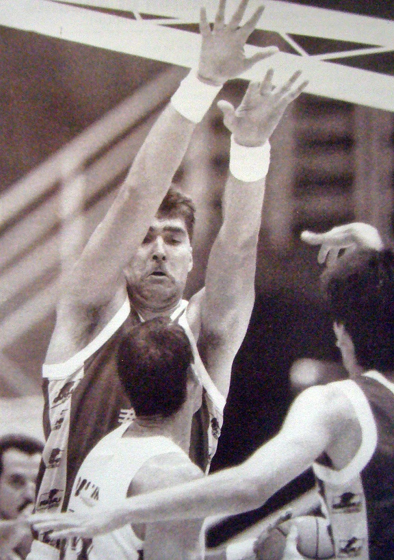 Una semana más tarde, de nuevo como anfitrión, se recibió al Hapoel de Tel Aviv. Un arranque soberbio con un parcial de salida de 23-9 hizo pensar que la victoria se iba a amarrar con facilidad. Pero nada más lejos de la realidad. La capacidad de sacrificio en defensa de los israelitas lo puso muy difícil. De nuevo una defensa zonal acabó con la inspiración local y la remontada puso en serio peligro el triunfo (en el minuto 30 se estableció la máxima diferencia visitante con un 52-61). En ese momento brotó el junior Jacobo Odriozola, con dos triples consecutivos en los instantes finales del partido catapultó a su equipo hacia un final épico (76-74). Si en este momento preguntara al lector quiénes fueron los mejores del encuentro, estoy seguro que habría un acierto pleno. Pues sí, entre Sabonis y Schlegel acumularon 41 puntos de los 76 totales.