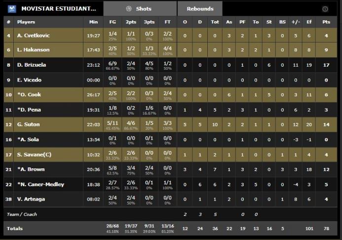 - Darío Brizuela: 17 puntos, 4/5 en triples, ¡6 robos de balón! La mini mamba fue clave en la victoria estudiantil. Su intensidad en defensa y su eléctrico ritmo ofensivo ayudaban a recuperar a su equipo el liderazgo en el marcador. La que sin duda fue su mejor actuación en partido oficial esta temporada le serviría para ser el mejor jugador del partido. Esta temporada es muy importante para Brizuela, y estamos seguros de que va a terminar de consagrarse como el fantástico jugador que es.